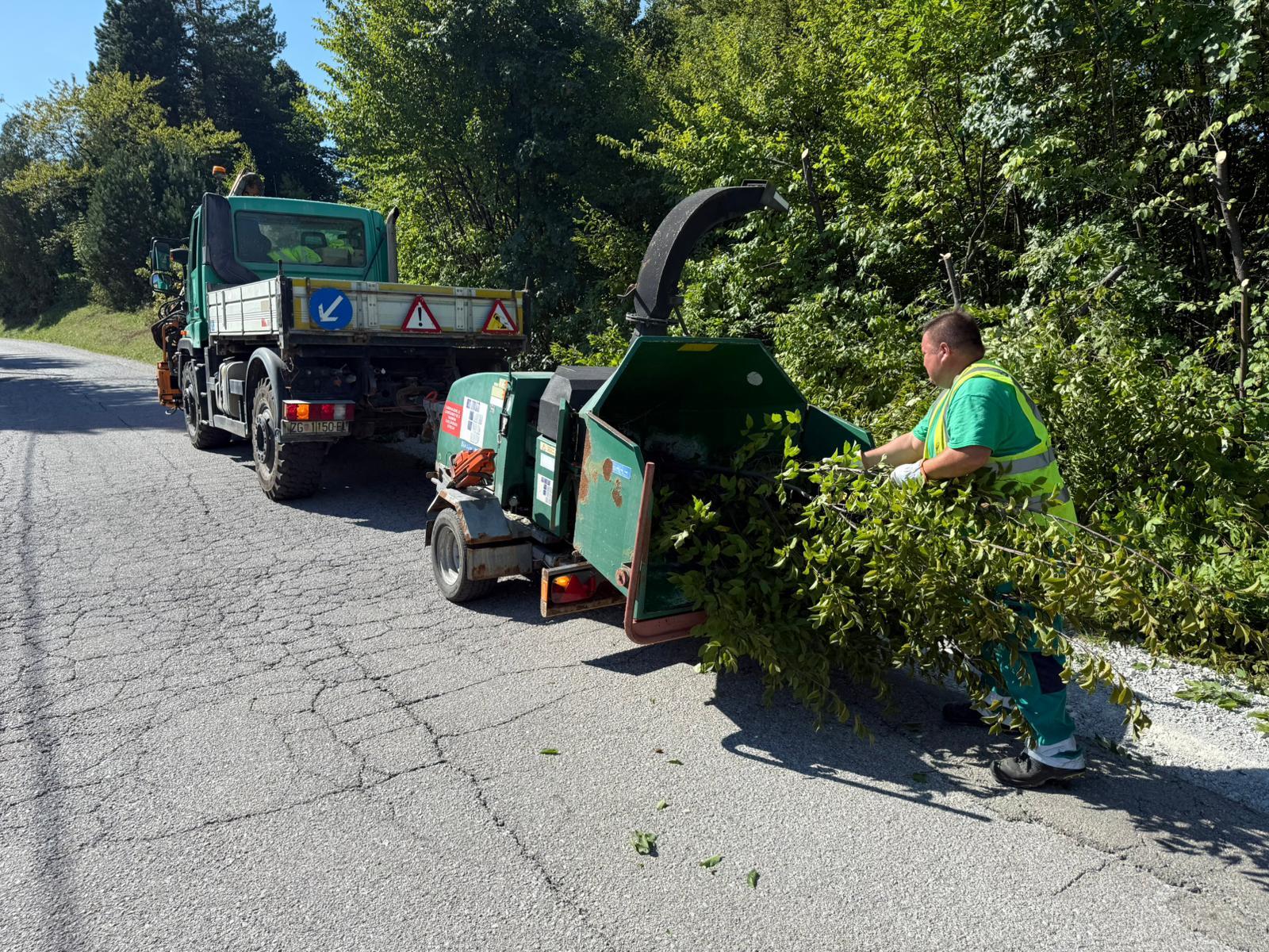 U tijeku je strojno i ručno orezivanje granja uz ceste. Riječ je o pripremnim radovima za nadolazeću zimsku službu kojima se nastoji osigurati slobodan profil ceste.