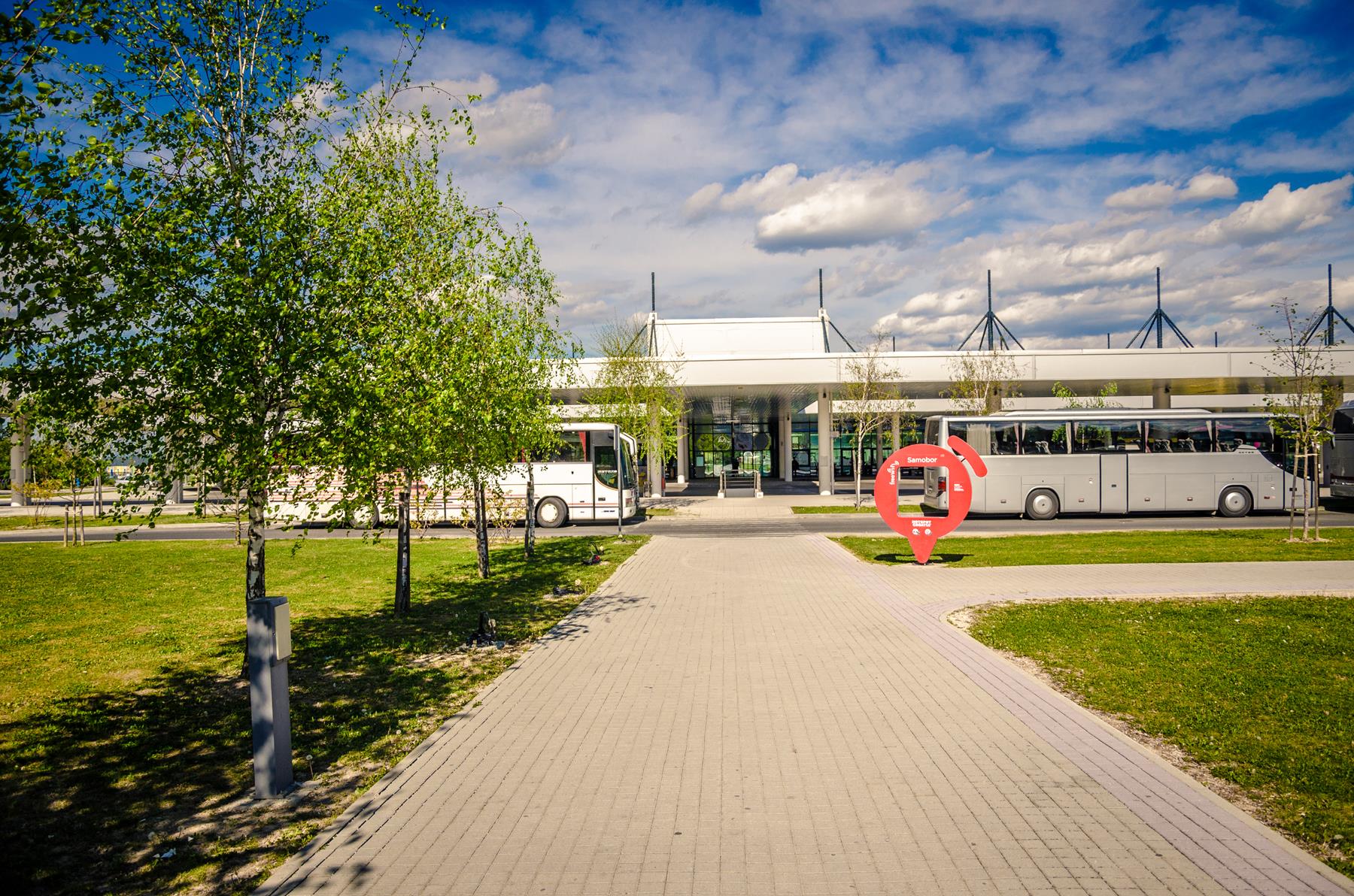 Autobusni kolodvor smješten je uz Ulicu grada Wirgesa, glavnu prometnicu kroz grad Samobor kojom se dolazi iz smjera Zagreba s jedne strane i Bregane, odnosno Slovenije s druge strane. U njegovoj neposrednoj blizini nalaze se Srednjoškolski centar Samobor, Sportska dvorana Samobor, trgovački centri Konzum i Lidl te Dom zdravlja Samobor. Uz zgradu kolodvora izgrađeni su i rotor, dvije ulice, park, otvoreno parkiralište, podzemna garaža te stajališta za taxi vozila.