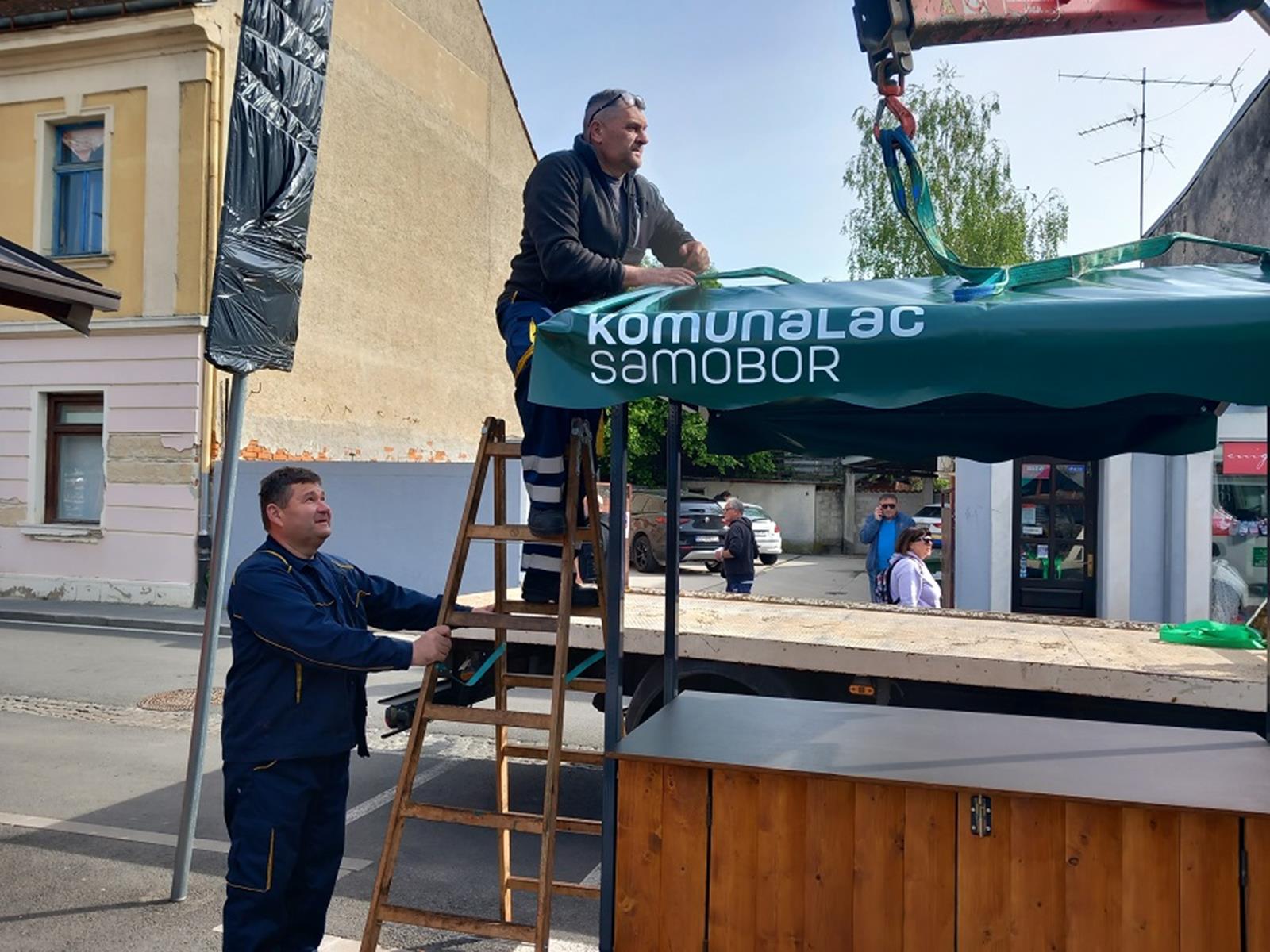 Na samoborsku tržnicu danas su postavljeni novi štandovi, koje su izradili radnici bravarske radionice Komunalca.