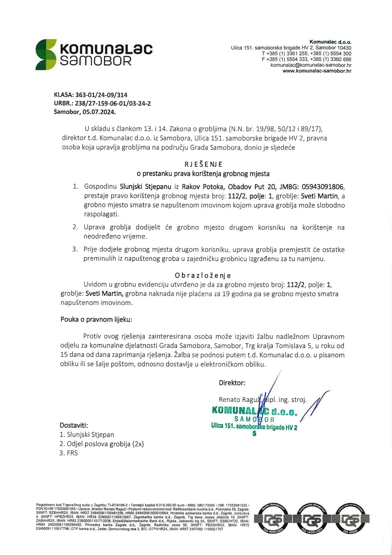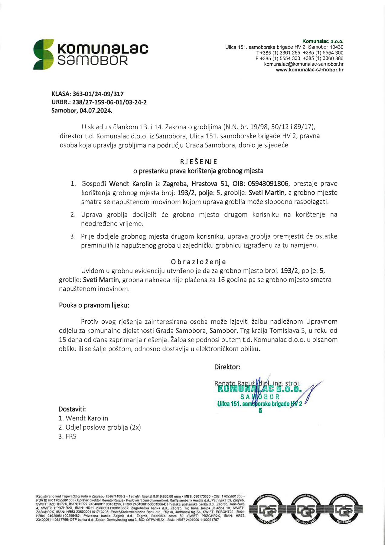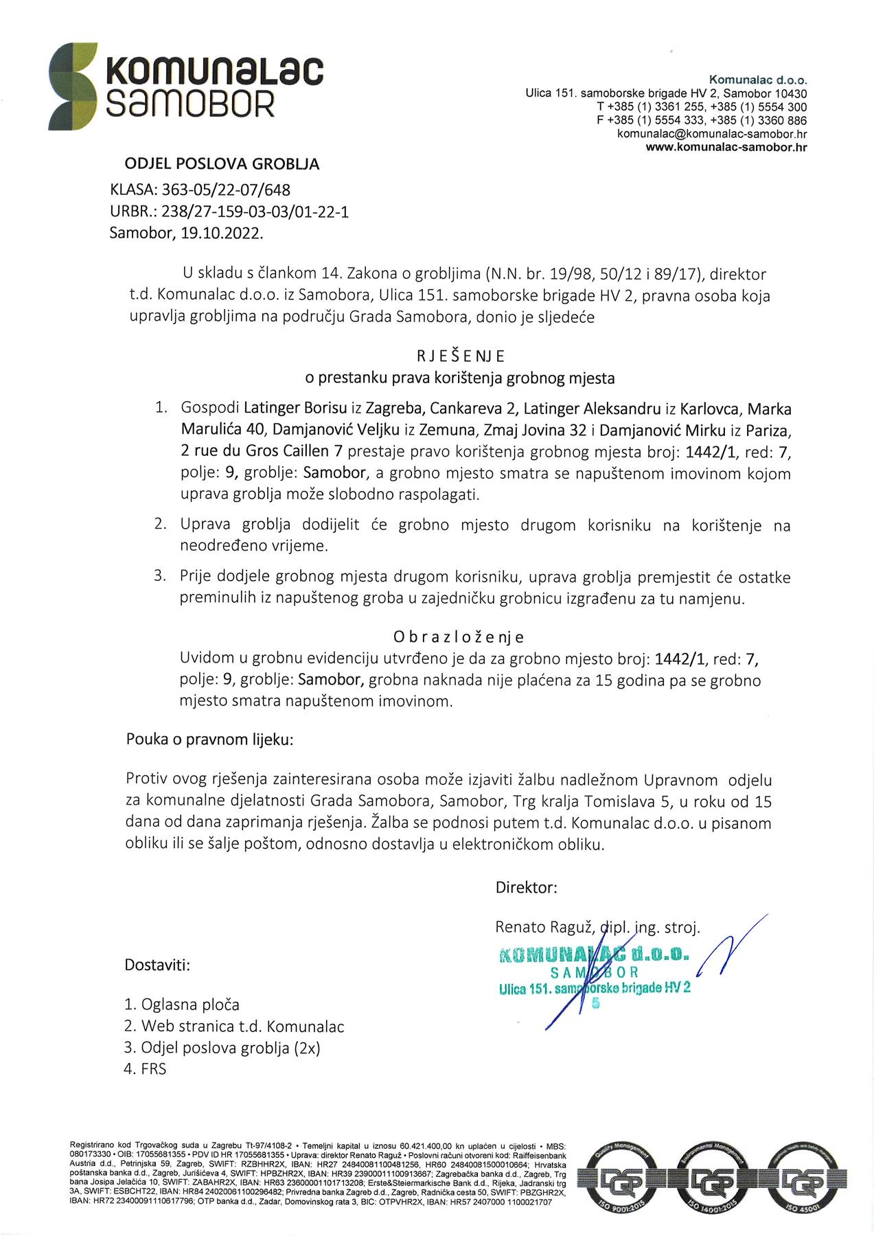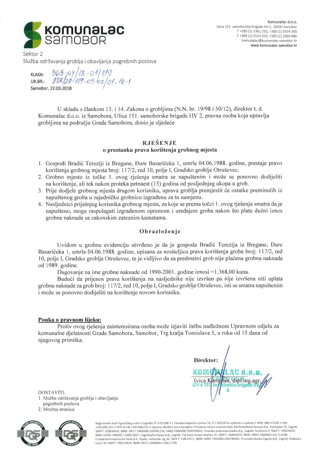 Rješenja o prestanku prava korištenja grobnog mjesta nalaze se u galeriji iznad.
