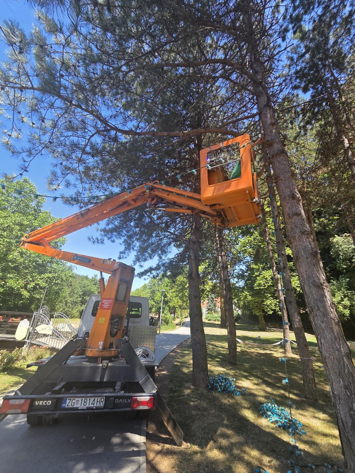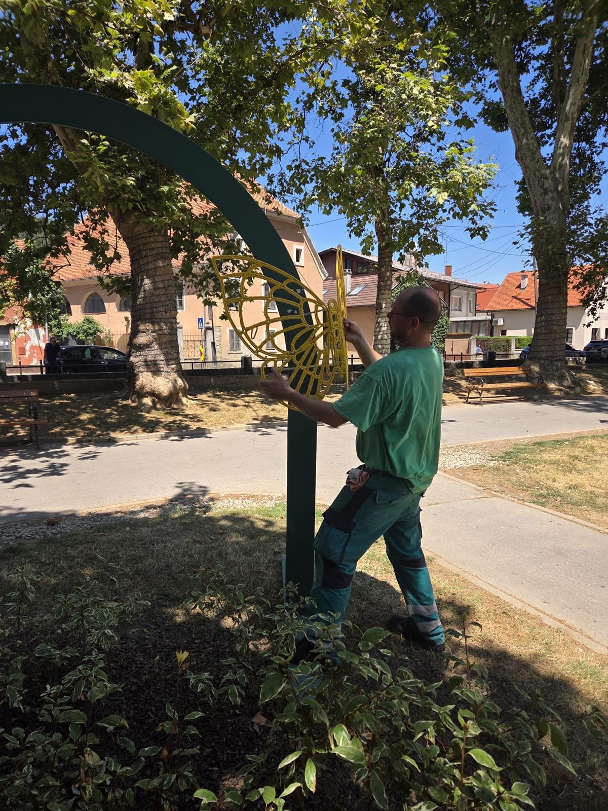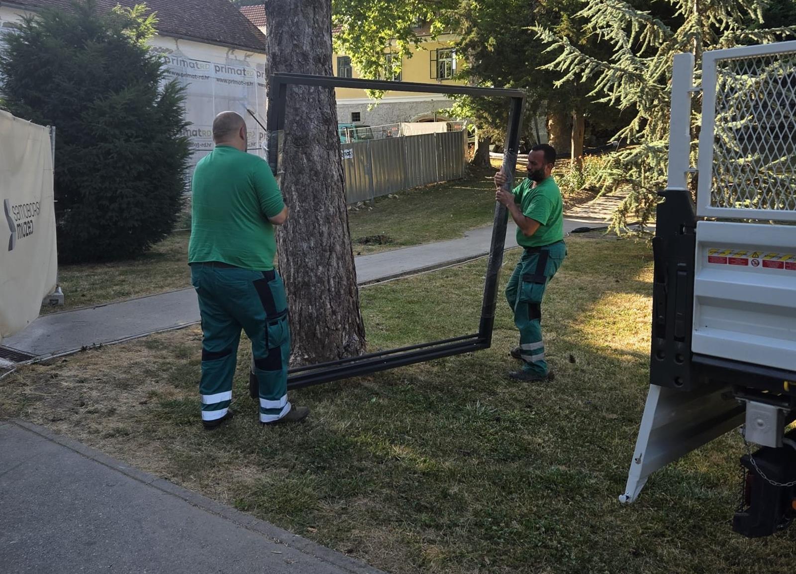 Radnici Komunalca uređuju park kod Samoborskog muzeja gdje će se od 4.- 13.7.2025. godine održavati glazbeni i zabavni program u sklopu manifestacije „Ljeto u Samoboru“.