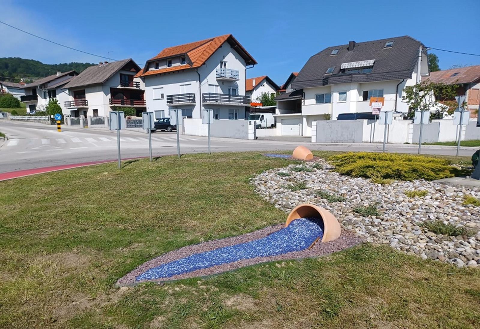 Novouređene gredice s kamenim zrnom plave boje predstavljaju vodu, koja izlazi iz polegnutih tegli, što još nismo imali priliku vidjeti na samoborskim prometnicama.