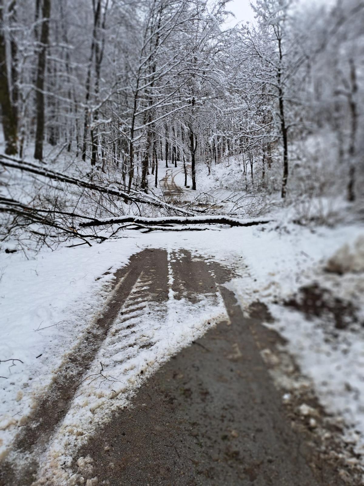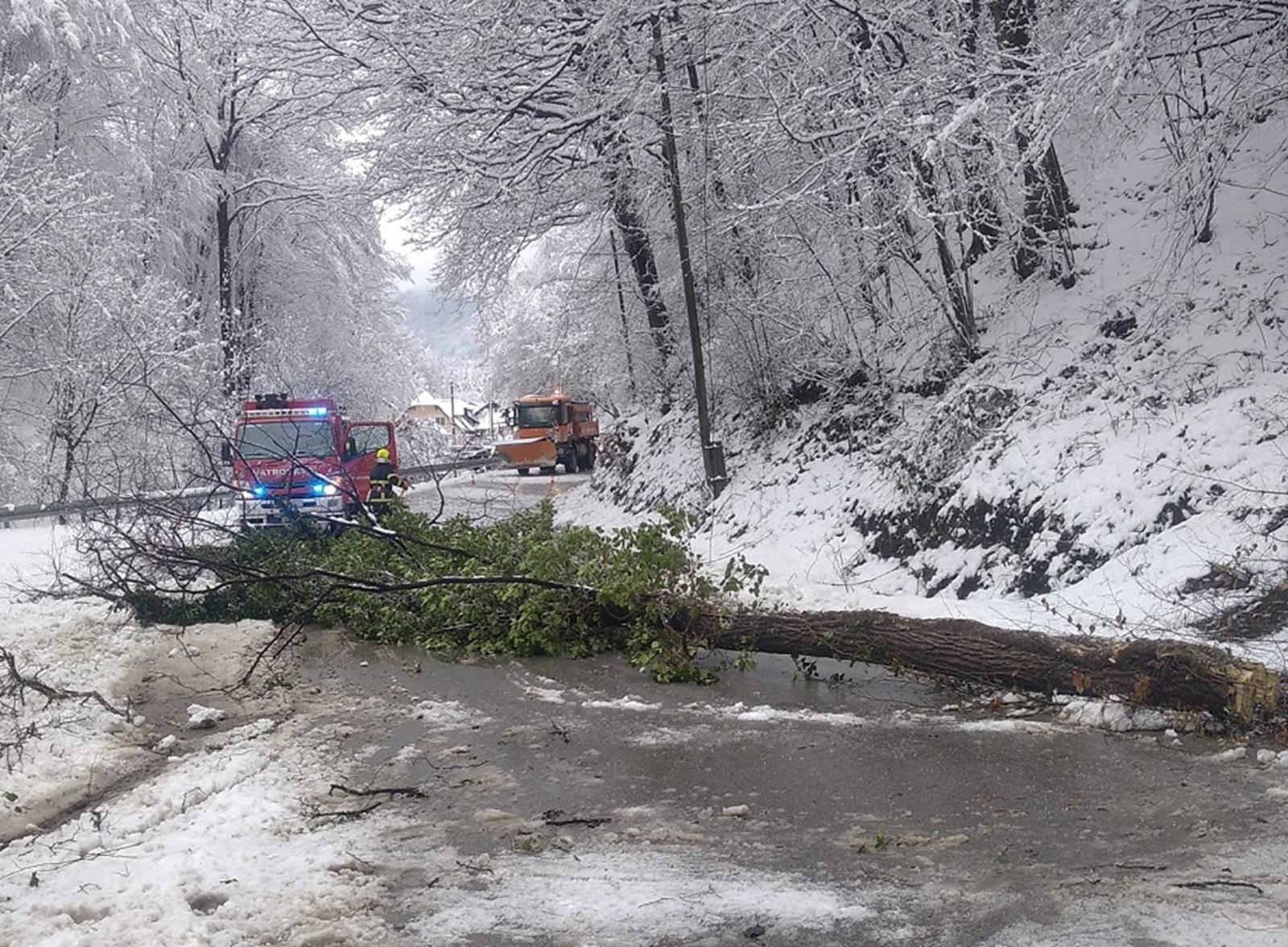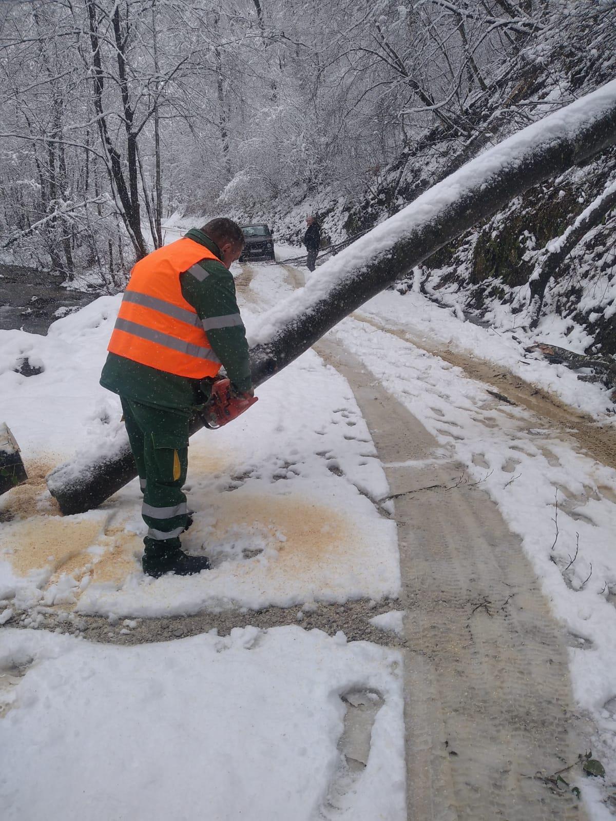 Snijeg koji je padao ovog vikenda stvorio je novi snježni pokrivač i uzrokovao rušenje stabala i granja na prometnice.